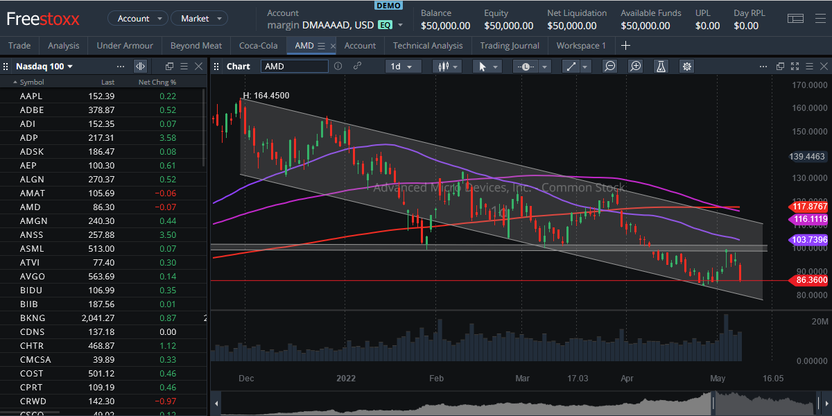 Freestoxx__dunkle_Anzeige_mit_Watchlist_und_offenem_Kerzenchart.png Freestoxx, eine Handelsplattform für Aktien, mit einer Watchlist und einem offenen Kerzenchart. Dunkle Anzeige. Quelle: Freestoxx