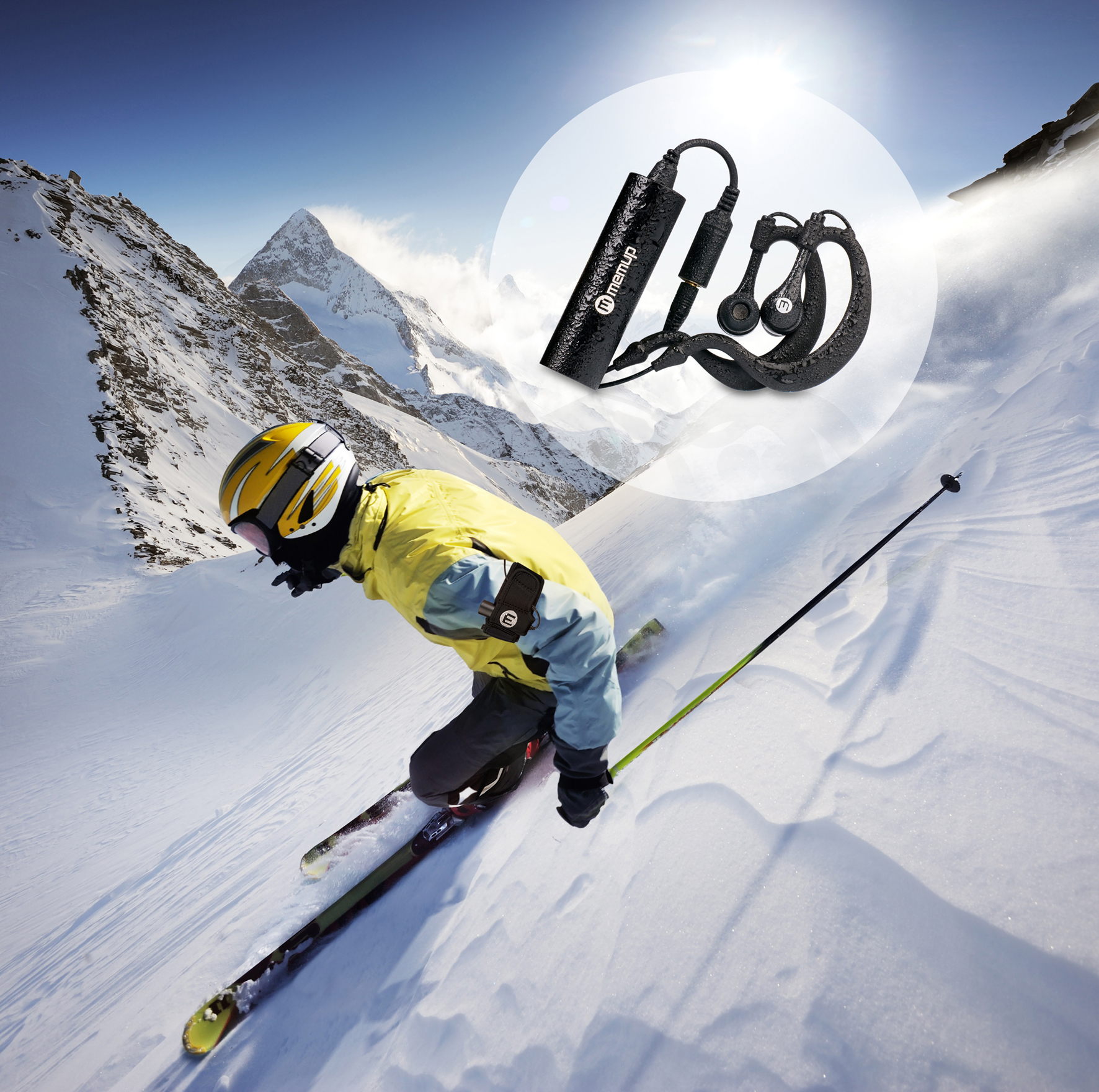 Memup Skiurlaub: Skifahrer mit mp3-Player Kanyon